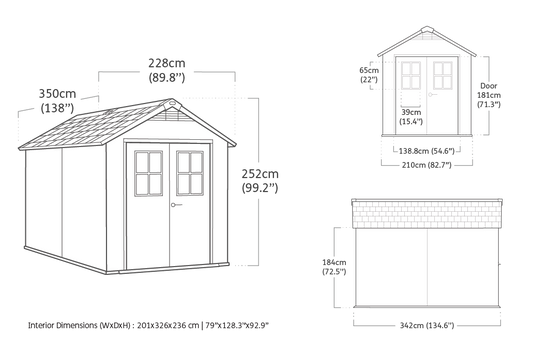 In duotech grauem, grauem Naturholz zwei Fenster in Polycarbonat, 230x350xh.242 cm,