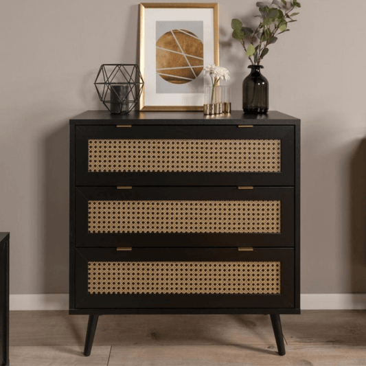 Cassettiera Vienna03A 3 cassetti nera con frontali vimini EFFEZ