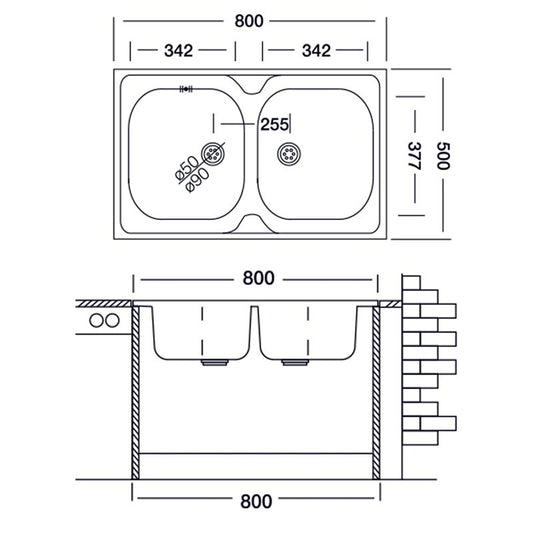 Küchenwaschbecken: zwei Edelstahl mit 50x80 cm Unterstützung aus Edelstahl