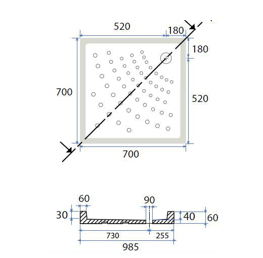 Quadratische Duschwanne H6 aus Dianhydro-Keramik
