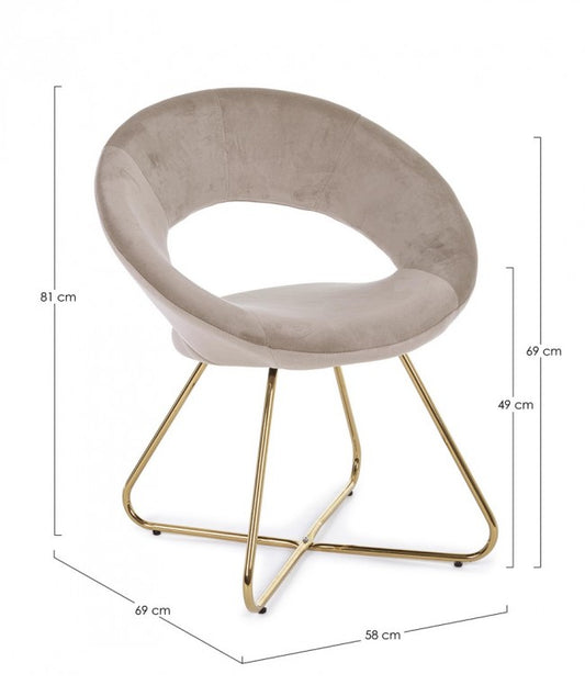 2x Vanity-Sessel aus taubengrauem Samt und goldenen Beinen