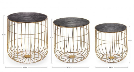 Set mit 3 Couchtischen aus Metall im Atmosphärenstil