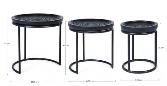 Set mit 3 schwarzen Couchtischen im Kirtan-Design