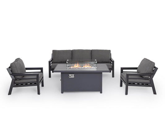 Set 4 Pz Salotto con Cuscino Hendrix Antracite in Alluminio, Acciaio, Vetro e Poliestere