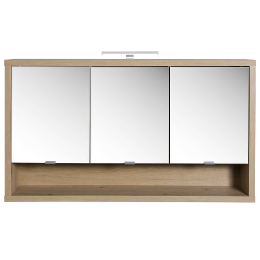 Specchiera Pensile con 3 Ante e 1 Vano, Luce LED, Dimensioni: 70x123x22 cm