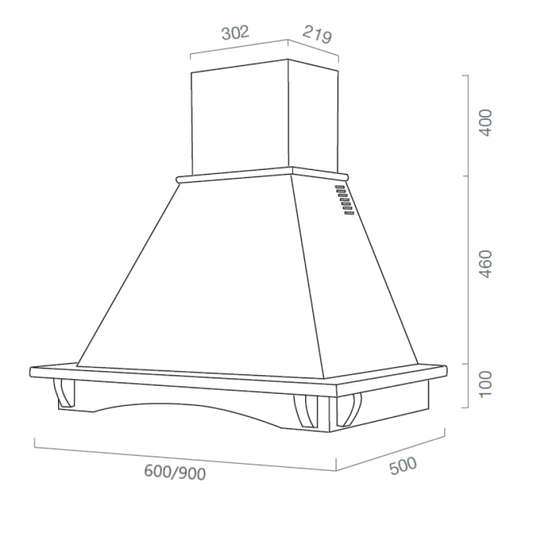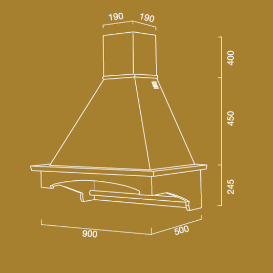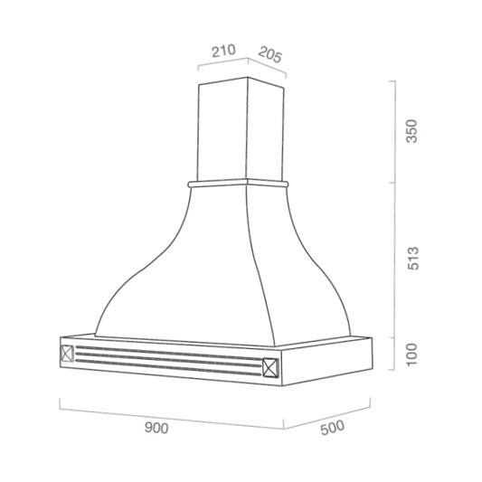 Dunstabzugshaube LALLA aus weißem Edelstahl und tabakfarbenem Holzrahmen 90 cm