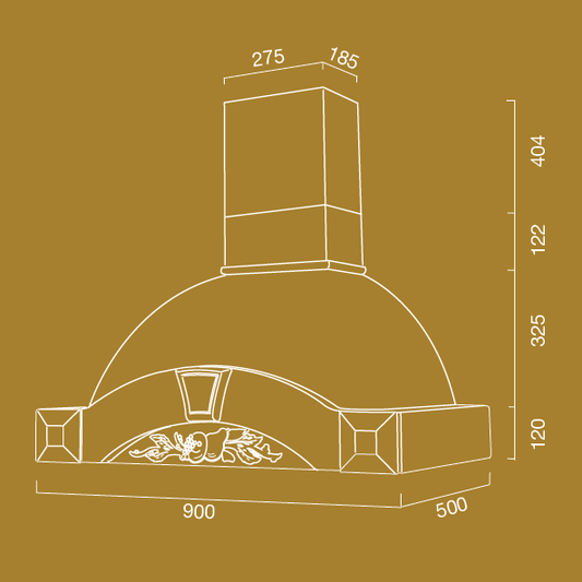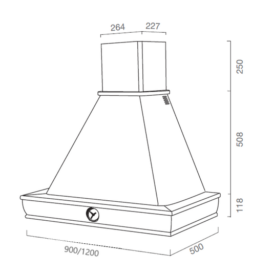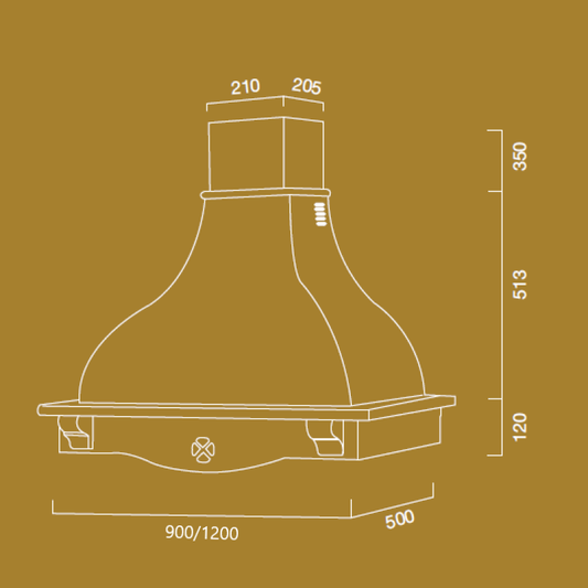 Dunstabzugshaube PROVENZA aus weißem Edelstahl und tabakfarbenem Holzrahmen 120 cm