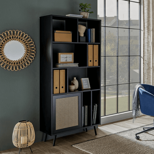 Libreria Vienna20A nera con frontali effetto vimini EFFEZ