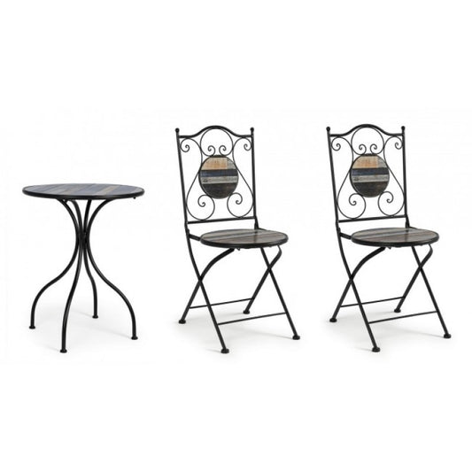 Gartenset aus Tisch und 2 Stühlen mit Huston-Keramikdekorationen