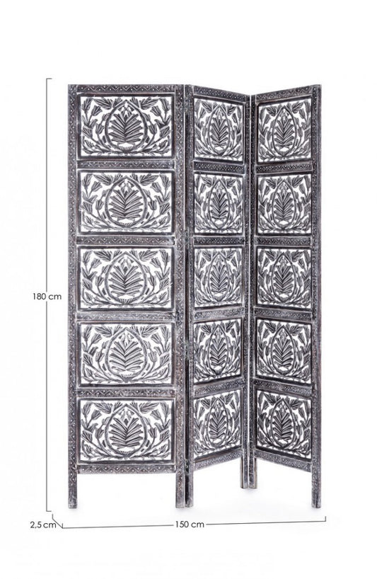 3-türiger, antikgrauer Paravent im Fusion-Stil von Darika