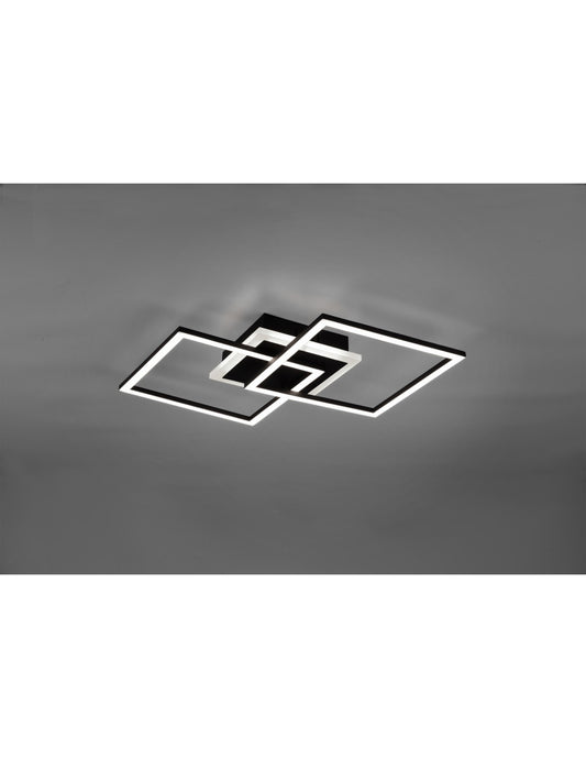 Venida Doppelte quadratische schwarze LED-Deckenleuchte 25 W dimmbar L57 cm Trio-Beleuchtung