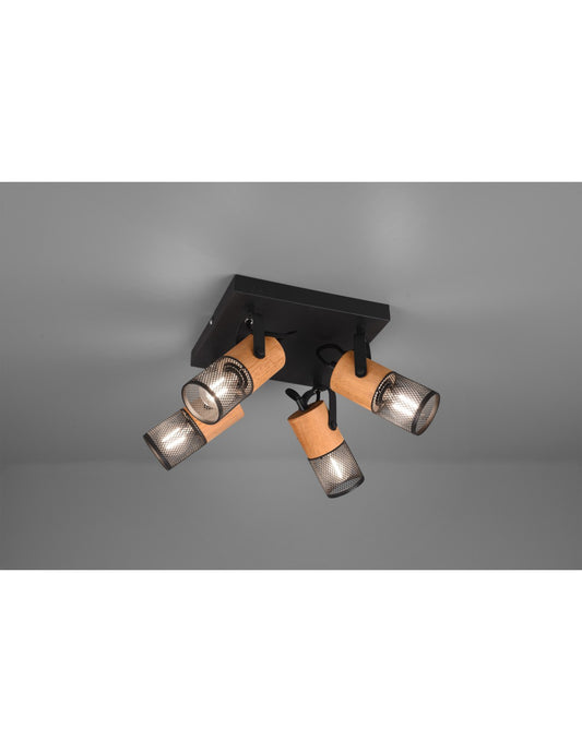 Tosh Schwarze Deckenleuchte 4xE14 Spot Holz- und Metallkäfig 22x22 cm Trio-Beleuchtung