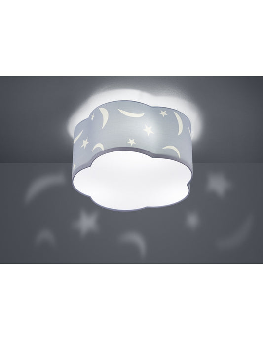 Moony Kinderzimmer-Deckenleuchte, blaue Monde und Sterne, Dekorationen, Ø40 cm, Trio-Beleuchtung