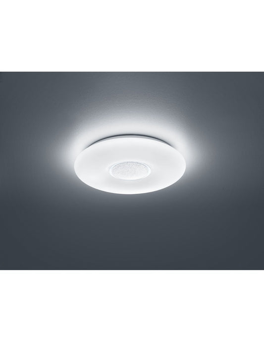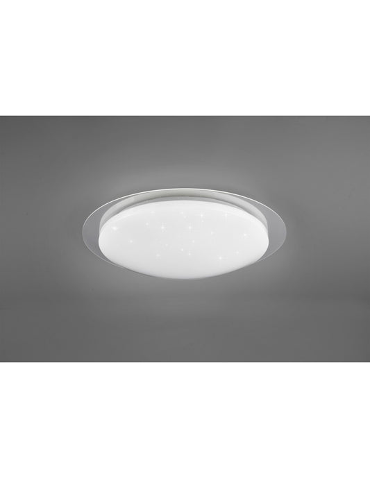 Moderne dimmbare LED-Deckenleuchte mit Glitzer-Stern-Effekt, Frodo, Weiß, Ø48 cm, Trio-Beleuchtung