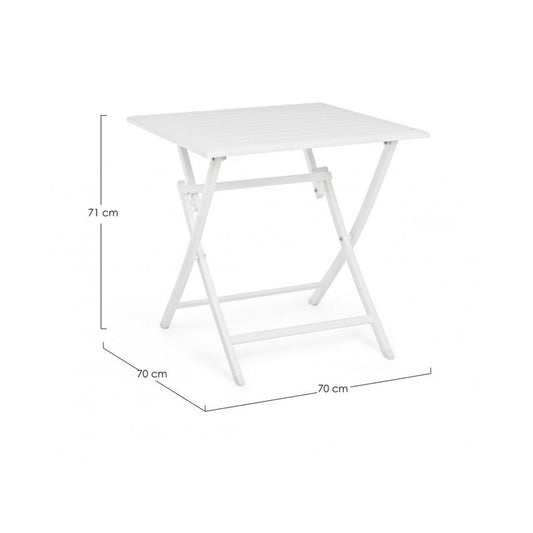 ELIN Klapptisch für den Außenbereich aus weißem Aluminium, 70 x 70 x 71 cm