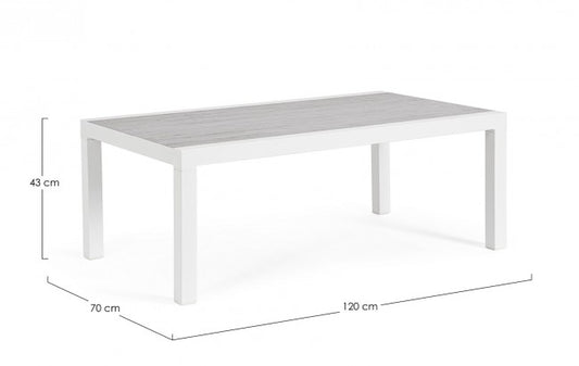 KLEDI LUNAR Couchtisch für den Außenbereich aus weißem Aluminium, 120 x 70 x 43 cm