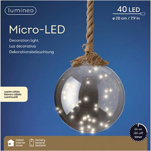 Pallina di Natale Luminosa in Vetro Fumè con Micro Led - 20 cm