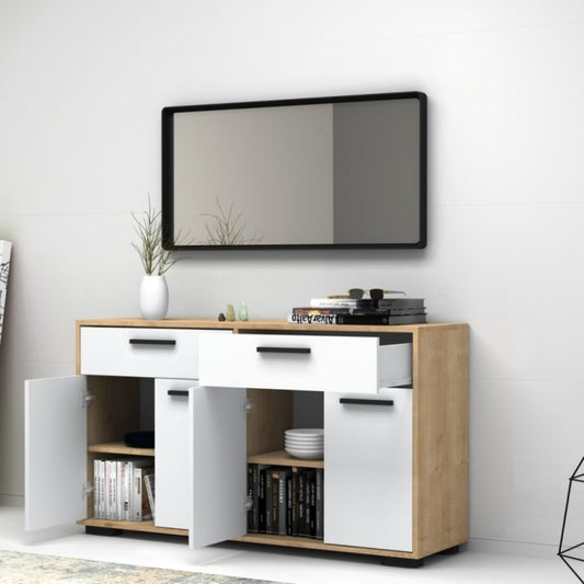 Mehrzweck-Sideboard mit vier Türen und zwei Schubladen, weiße Eiche TRUVA, 140 x 40 x 78 cm