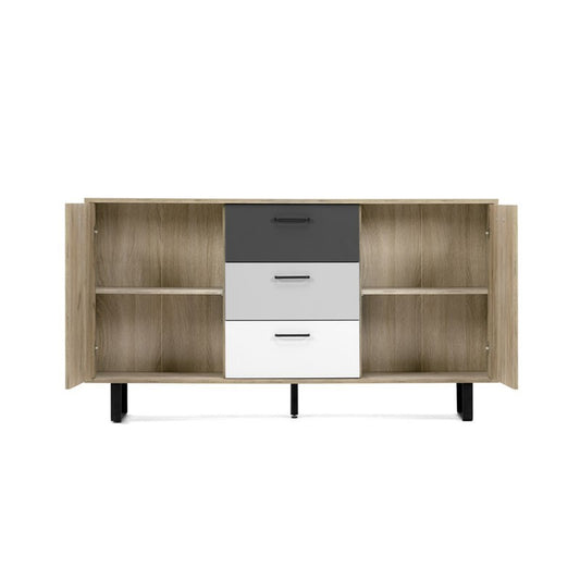 Sideboard 2 Türen 3 farbige Schubladen graue Eiche 160x35xh.86 cm