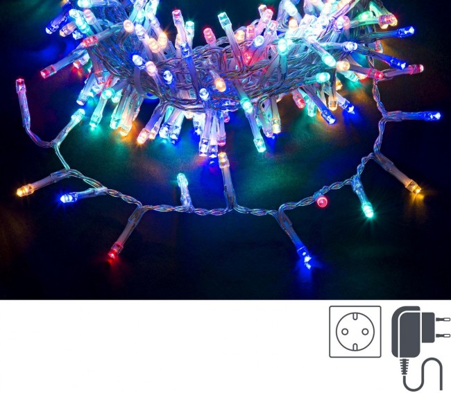 Snake 400LED -Kette, mehrfarbiges Licht, 5 -mm -LED -Größe nicht austauschbar. Transparente Draht, Gesamtlänge von 11 m Draht, 3 -mt -Netzteilkabellänge, 8 -mt -Lichtdrahtlänge, 2 cm LED -Abstand. Ausgestattet mit Schuko -Sockel. 8 Licht spielt mit Gedächtnis. Für interne externe Verwendung IP44. Mit Farbbox. Mit Transformator 31V3.6W.