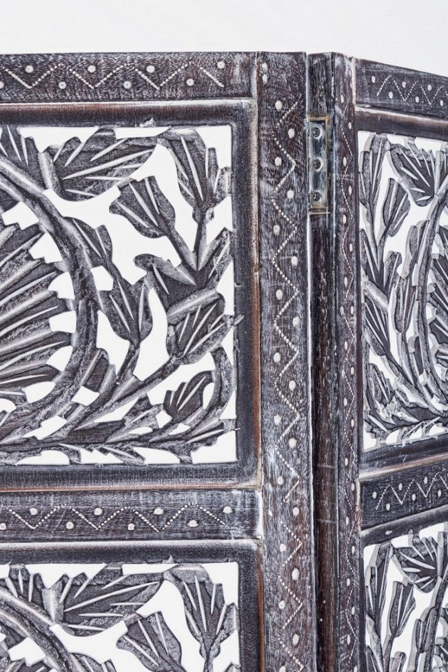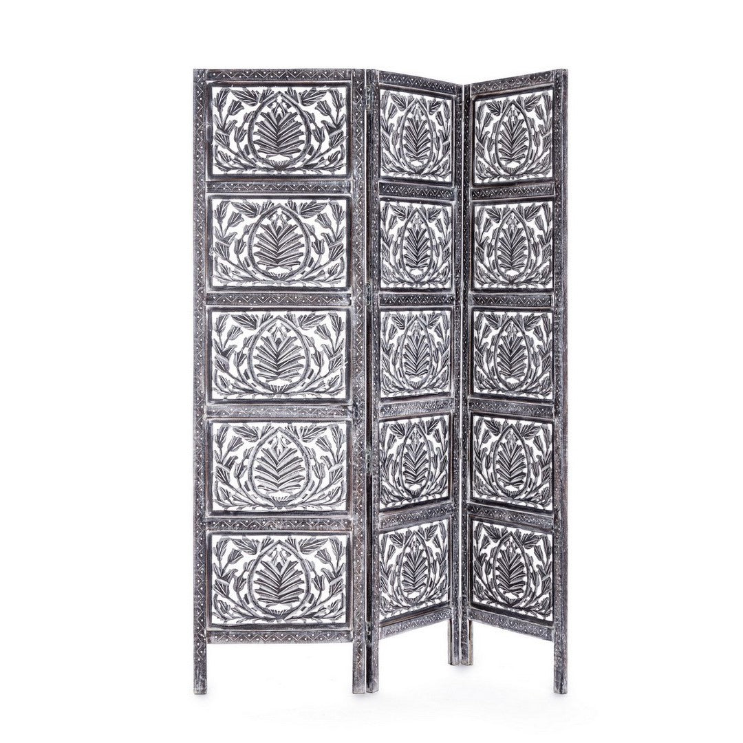 3-türiger, antikgrauer Paravent im Fusion-Stil von Darika