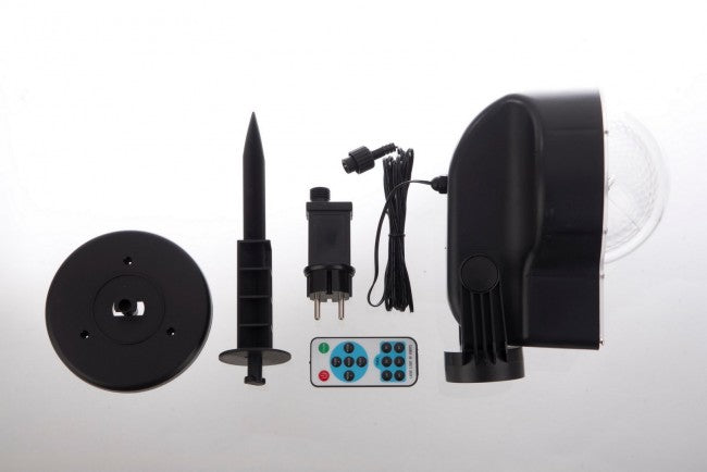 LED -Projektor mit einem schneebedeckten Effekt, ideal für die Personalisierung und Beleuchtung jeglicher Umgebung, indem die Magie des Schnees nachgebaut wird, indem er mit einer bewegenden LED -Dekoration kombiniert wird. Geeignet für interne und externe Verwendung IP44. Zwei Basen enthalten, eine für flache Oberflächen und eine zum Verankern am Boden. Potenza 10W, AC220-240V/110 Eingang. Schwarze Kunststoffstruktur. Ausgestattet mit 8 LEDs.