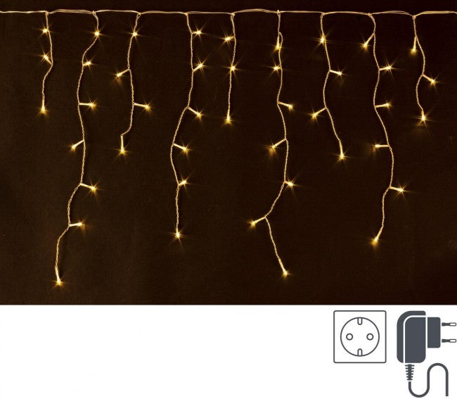 300er Vorhang, klassisches Licht, 5 -mm -LED -Größe. Transparente Draht 0,15 mm2, 3-7-6 Lichtdrahtsequenz, Gesamtlänge 9 mT, 3MT-Stromkabellänge, 6-mt-Lichtdrahtlänge, 10 cm LED-Abstand, Abstand zwischen Lichtwinden 10 cm. Ausgestattet mit Schuko -Sockel. 8 Licht spielt mit Gedächtnis. Für interne externe Verwendung IP44. Mit Farbbox. Mit Transformator 31V3.6W