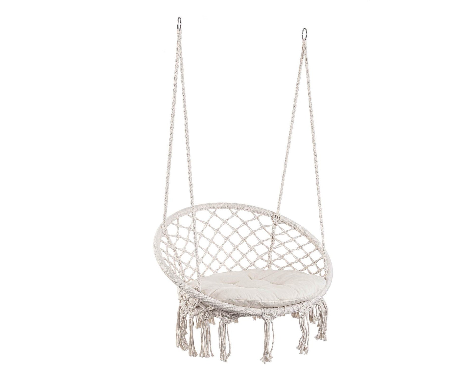 Amaca Pensile Javier Tondo Bianco D88x130h in Cotone, Poliestere e Acciaio