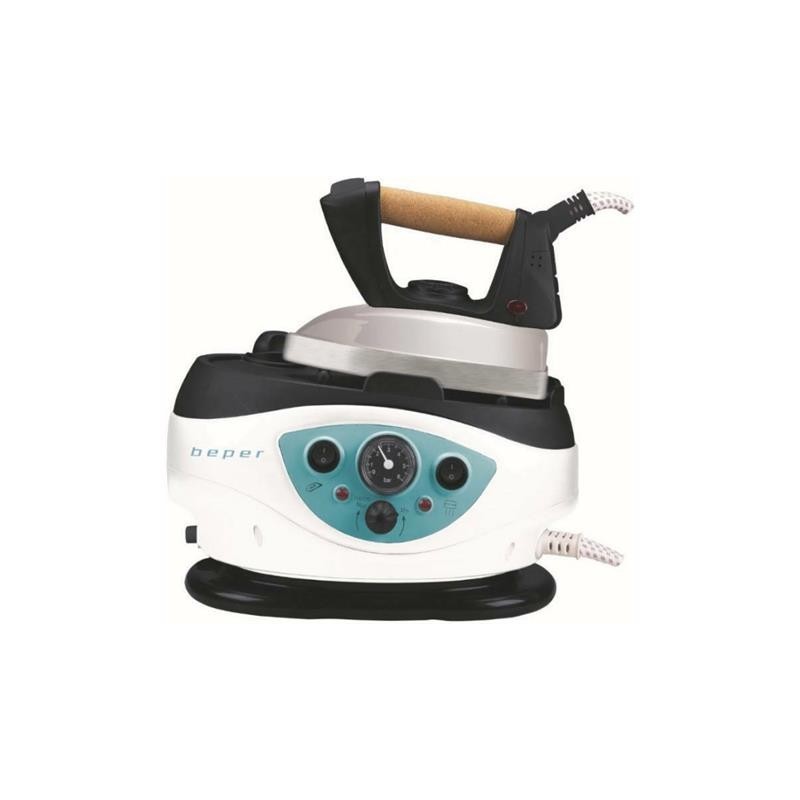 Ausgestattet mit einem doppelten Einschaltknopf für Bügeleisen und Boiler, um zwischen Trocken- und Dampfbügelmodus zu wählen. Ergonomischer Korkgriff für einfachen Halt.
