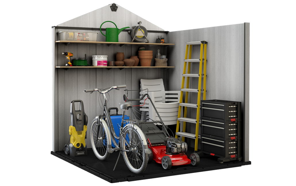 La casetta Oakland 757 è realizzata in DUOTECH™, un materiale innovativo che riproduce l'effetto del legno spazzolato sia alla vista che al tatto. Grazie alla sua struttura con pannelli a doppia parete e rinforzi in metallo, garantisce una resistenza alla copertura fino a 150 Kg/m². Le due porte facilitano l'accesso a biciclette, mobili, bidoni per la spazzatura e attrezzi da giardino. Inoltre, i pannelli sono perforabili, consentendo una massima personalizzazione della struttura con l'aggiunta di mensole ad esempio. L'ampio lucernario garantisce un'illuminazione naturale degli spazi interni. La casetta è facilmente assemblabile e dotata di chiusura lucchettabile per una maggiore sicurezza.