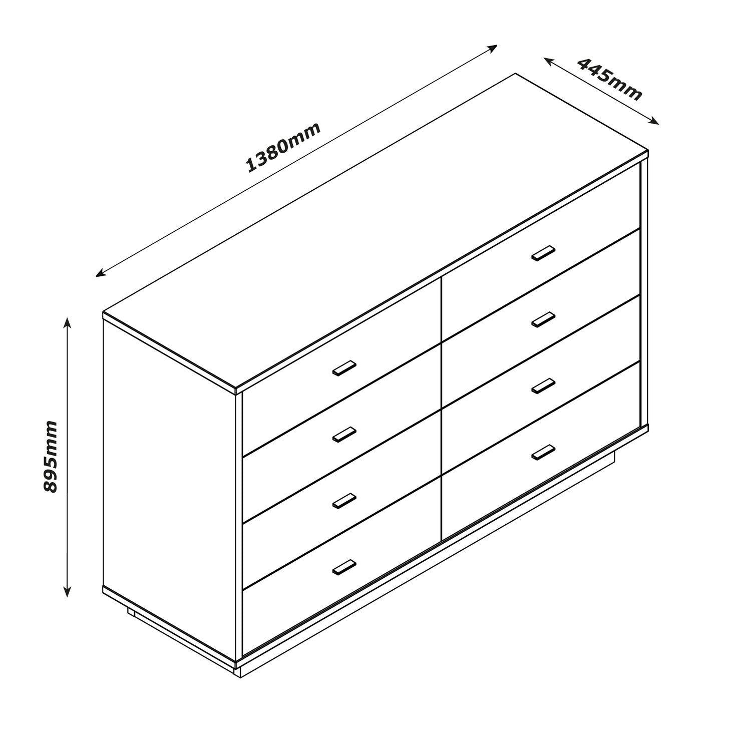 Composta da 8 cassetti spaziosi, ti offre la possibilità di organizzare in modo ordinato i tuoi vestiti e gli oggetti personali, garantendo un ambiente sempre ordinato e accogliente.