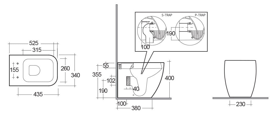 Metropolitan Unterputz-WC ohne Spülrand – Universal-Ablauf