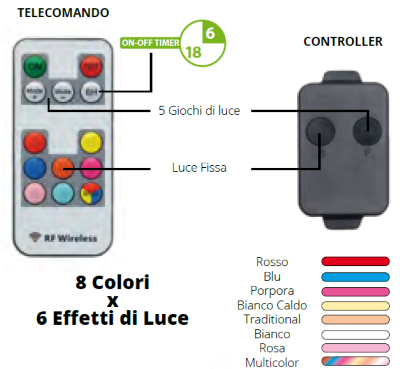 8 Farben x 6 Lichteffekte (48 Lichteffekte einschließlich Warmweiß und Festlicht)