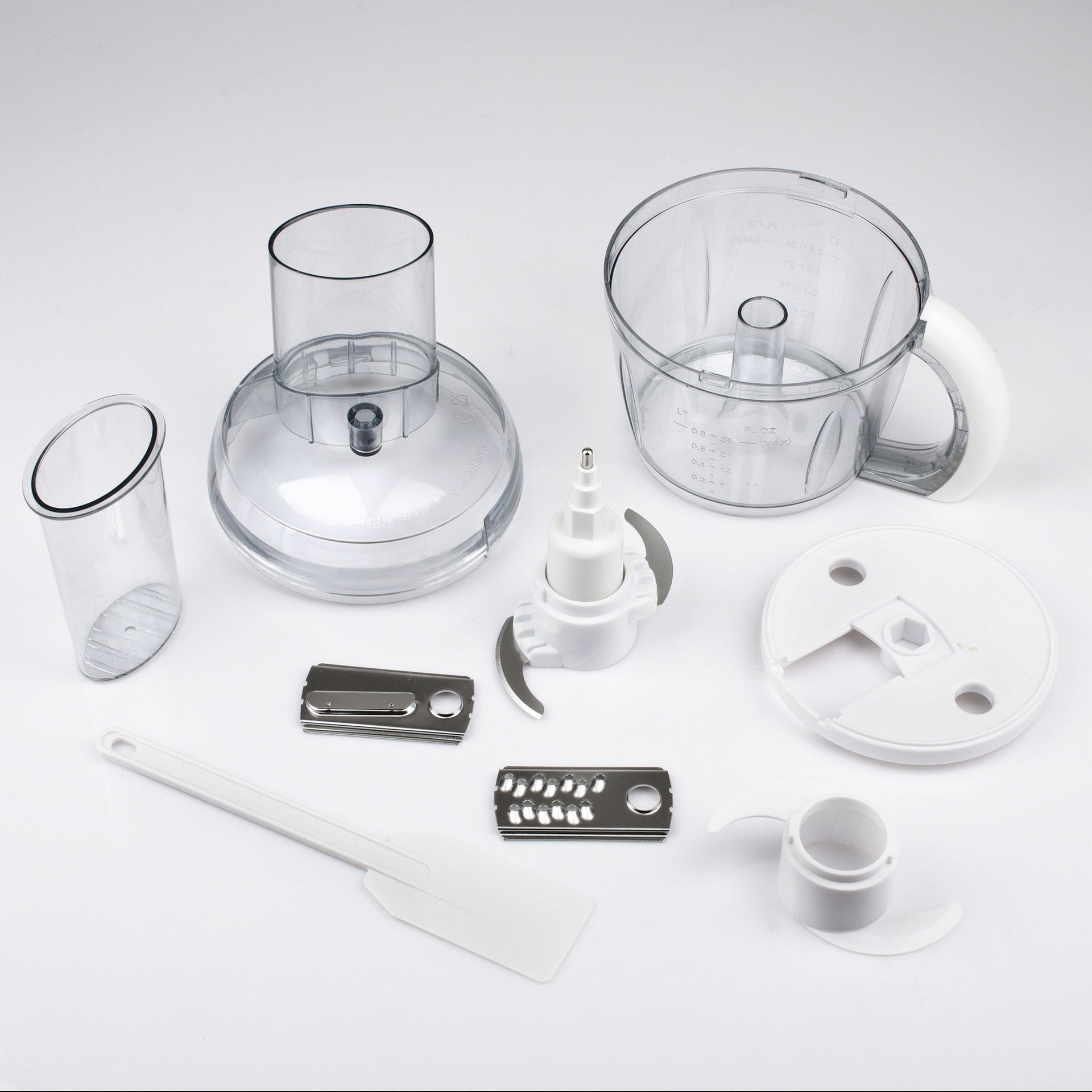 Dank der Vollständigkeit des mitgelieferten Zubehörs ist es in der Lage, jede Zutat mühelos und in kürzester Zeit zu schneiden, zu schneiden, zu zerkleinern, zu zerkleinern, zu mischen und zu homogenisieren.