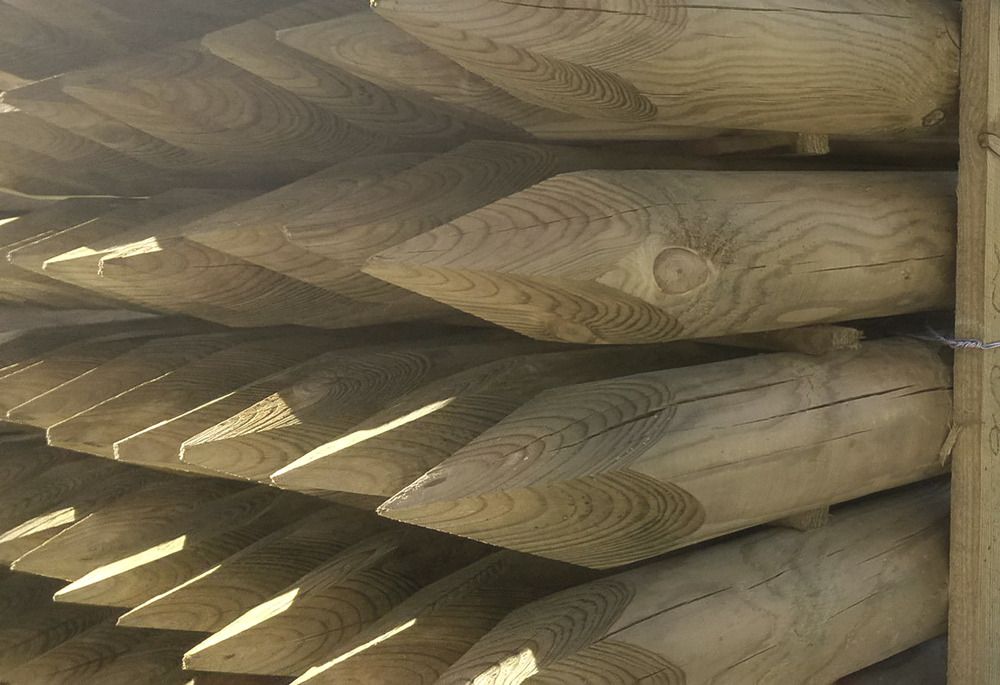 Pali tondi a punta in legno naturale impregnato. Ideale per sostenere recinzioni.