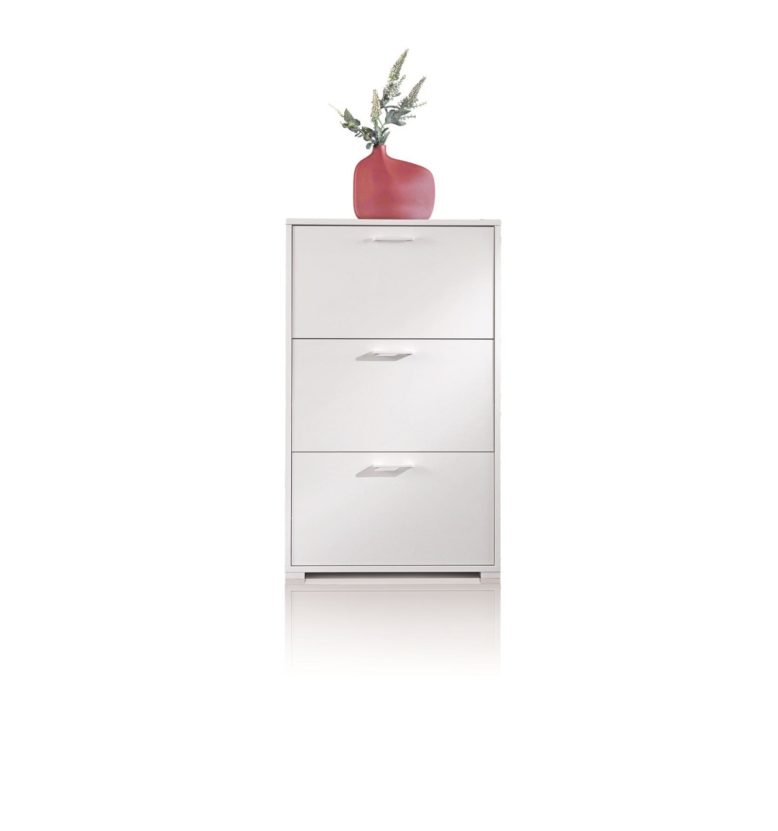 Schuhregal mit doppelter Tiefe und drei Türen für bis zu 18 Paar Schuhe weiß/weiß