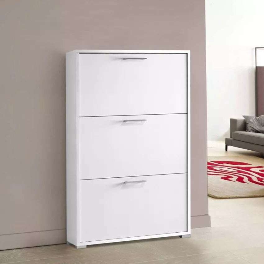 Schuhregal mit drei Türen für bis zu neun Paar Schuhe weiß