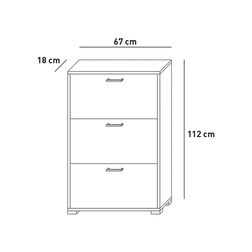 Schuhregal mit drei Türen. Bis zu neun Paar Schuhe.