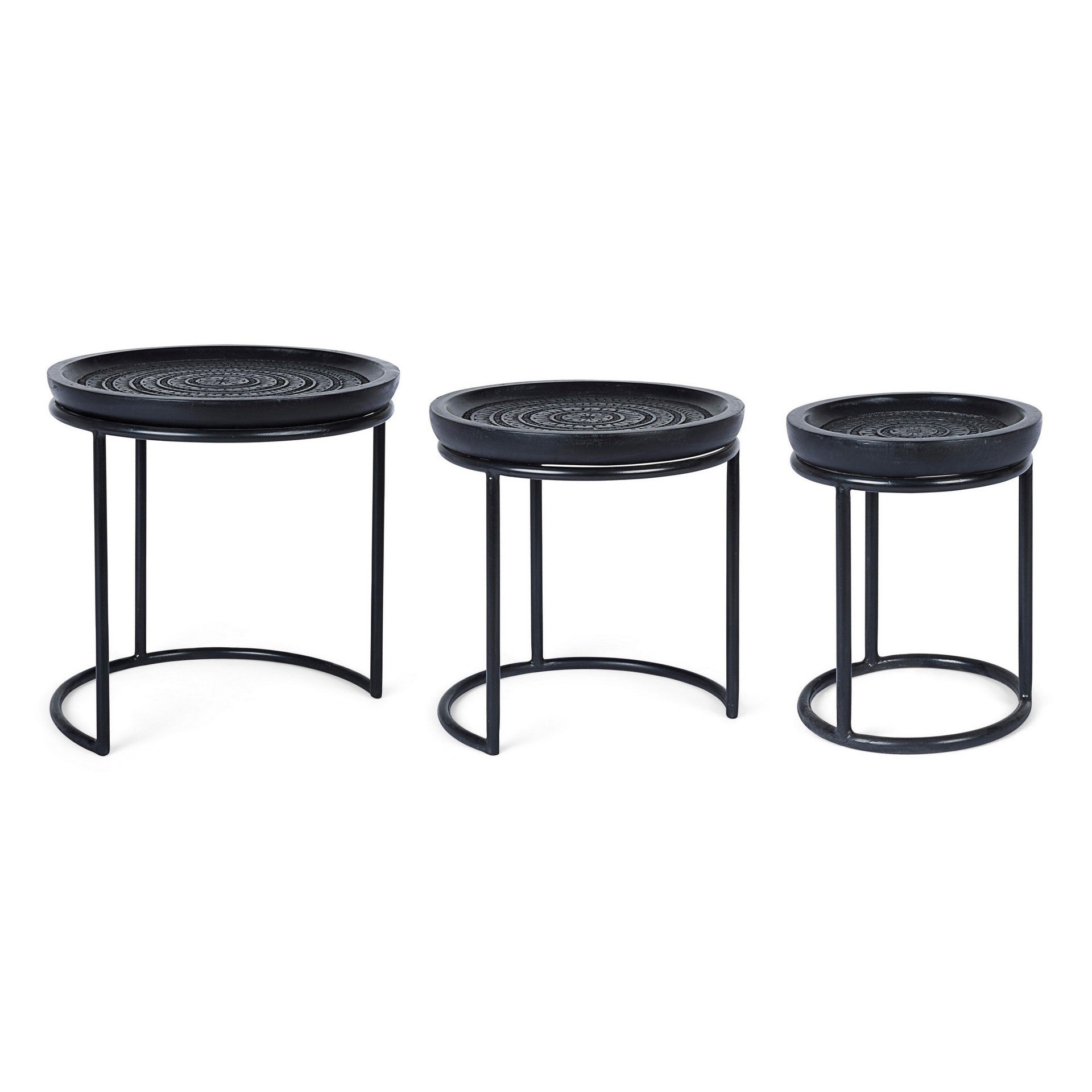 Set mit 3 schwarzen Couchtischen im Kirtan-Design