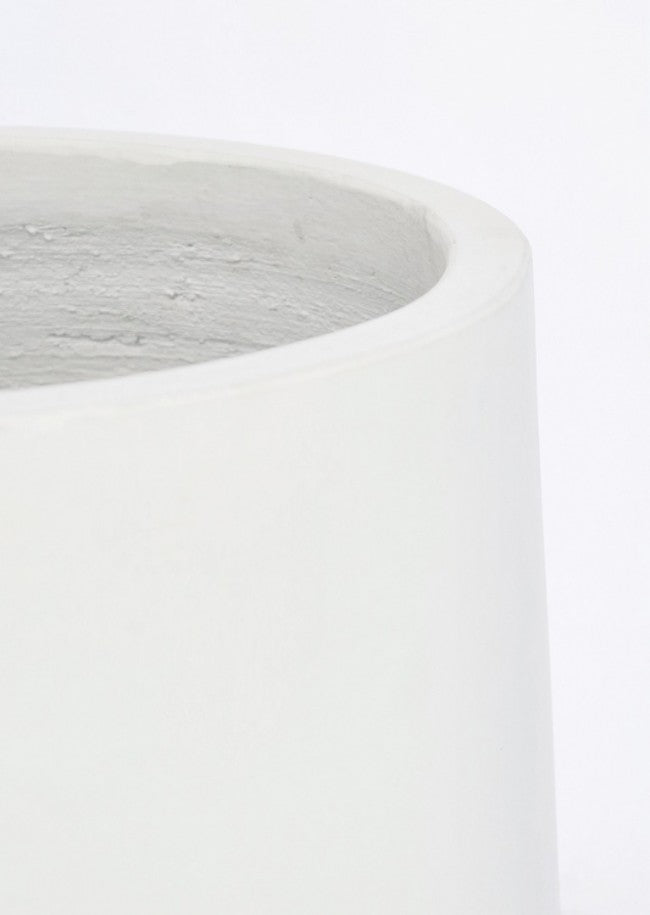 Die Hoian To Bianco Basso Vase ist dank ihrer robusten Zusammensetzung aus Zementfasern und Ton für Witterungsbedingungen im Freien konzipiert. Es kann Sonne, Regen und Wetter ausgesetzt werden, ohne sich zu verschlechtern, was eine lange Lebensdauer gewährleistet.