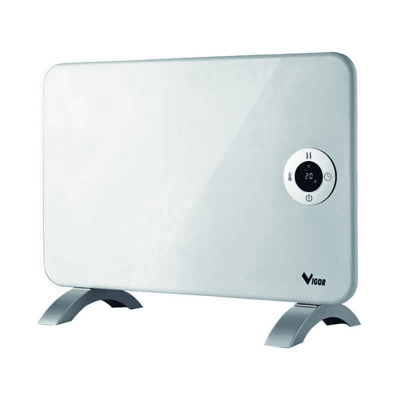 Technische Daten: Leistung 500-1000 W; Stromversorgung 230V/50 Hz; hocheffizientes Aluminium-Heizelement; LED-Anzeige; einstellbarer Thermostat; 24H programmierter Einschalttimer; Fernbedienung; Wärmeschutz;